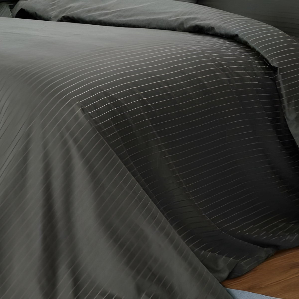 Designer Notes This quilt cover by Bedding King features a simple pinstripe design in a soft charcoal color with a...