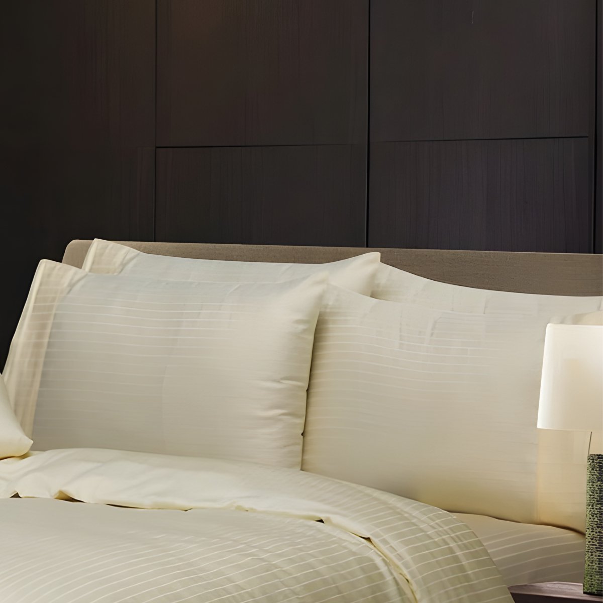 1000TC 6 Pcs Pure Cotton Stripe Quilt Cover Set - Ivory