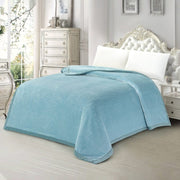 The Glacier Blanket by Bedding King brings a cool and calming touch to your bedroom with its glacier color. The soft, solid hue creates a peaceful and elegant look that will catch your eye and enhance your home decor.