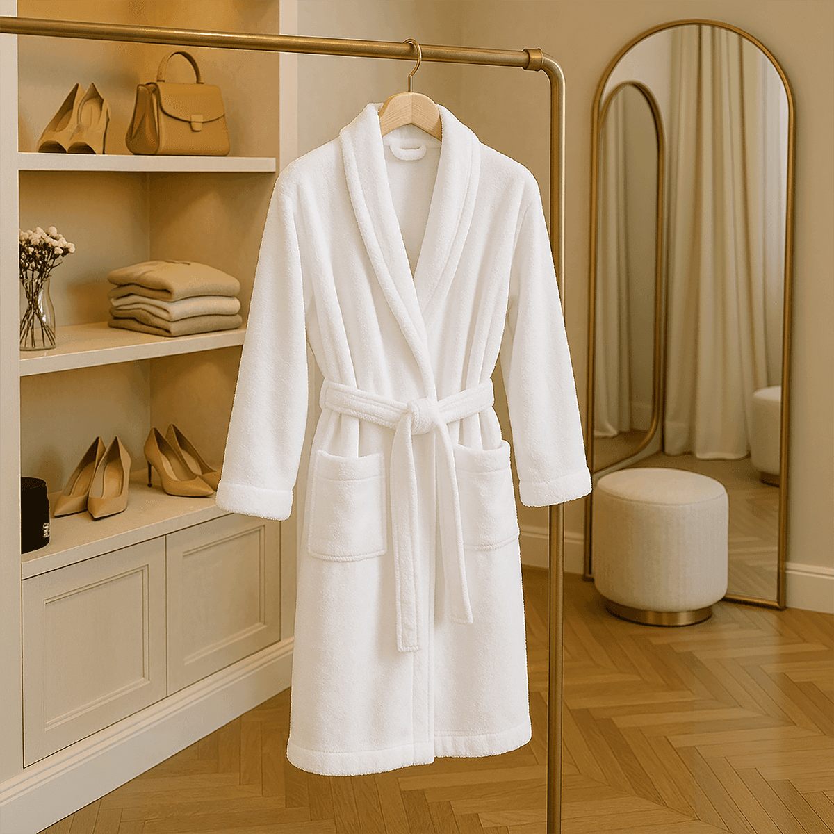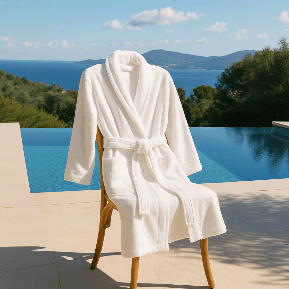 Designer Notes The White Cotton Terry Bathrobe by Bedding King is made for comfort and everyday use. It?s crafted from...