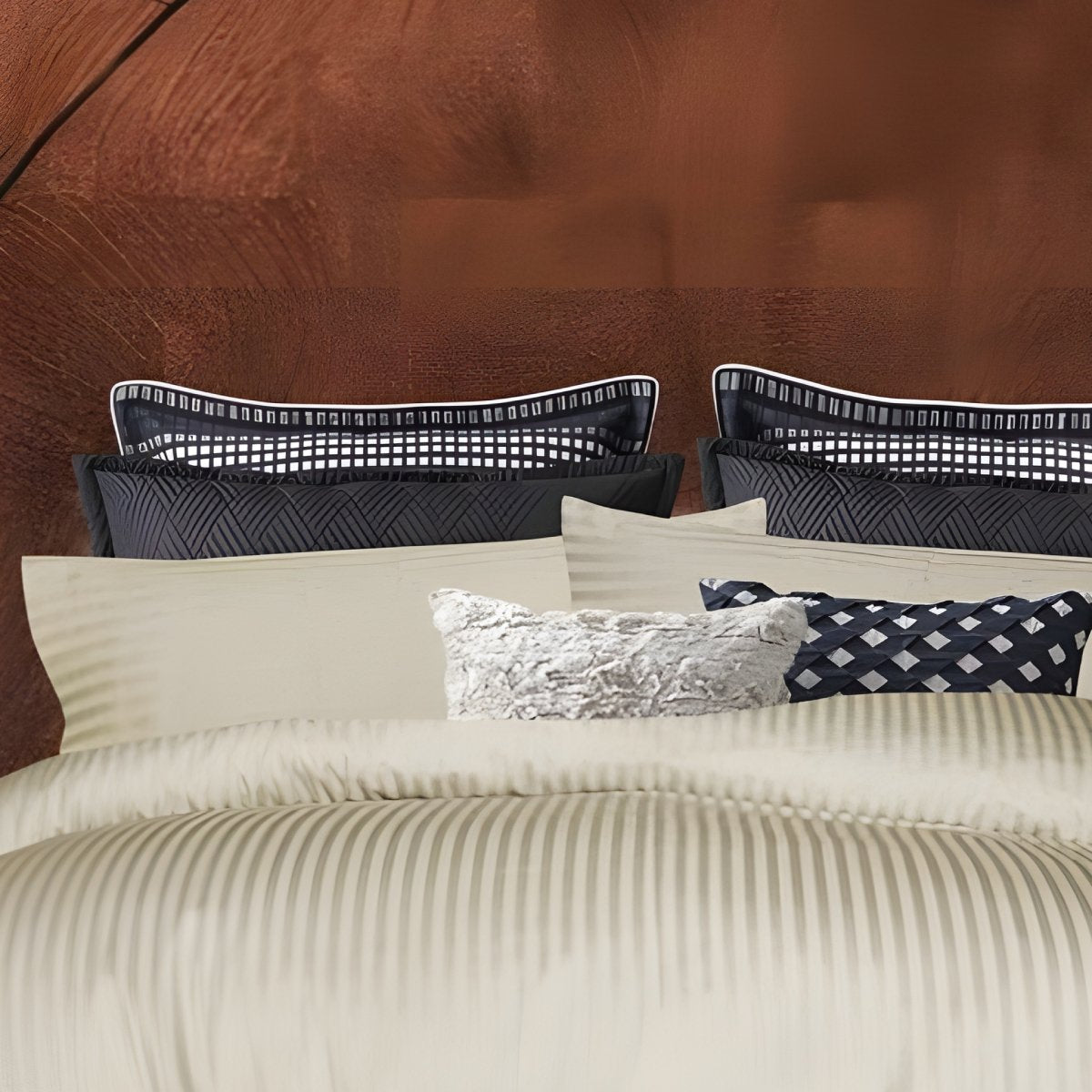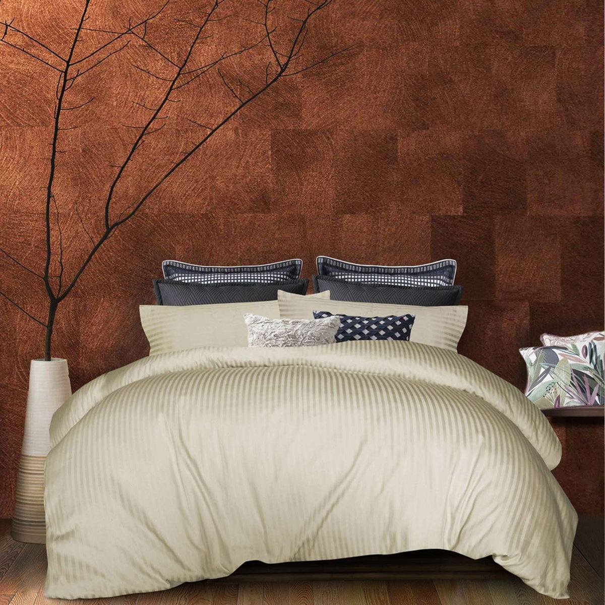 1000TC Cotton Rich 3Pcs Quilt Cover Broad Stripe - Ivory